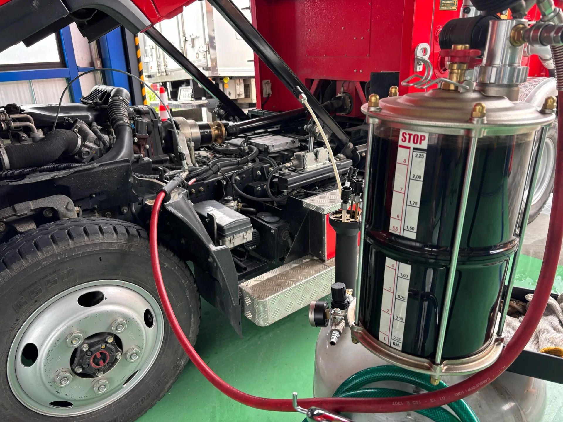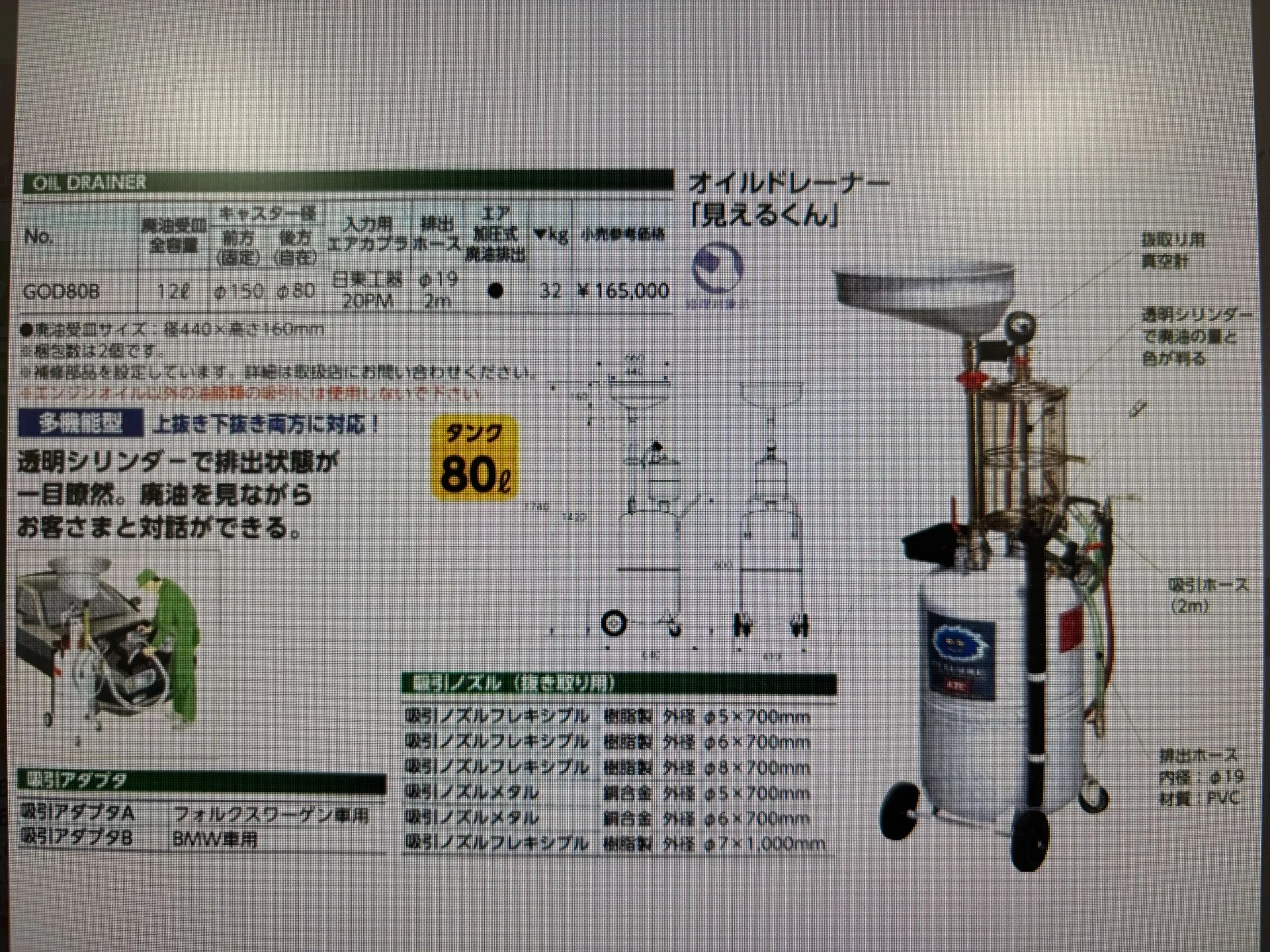 オイルが何ℓ抜けているのかメモリで把握する事が出来、吸入、排出迄全てエアで完結できるのでとても便利です。